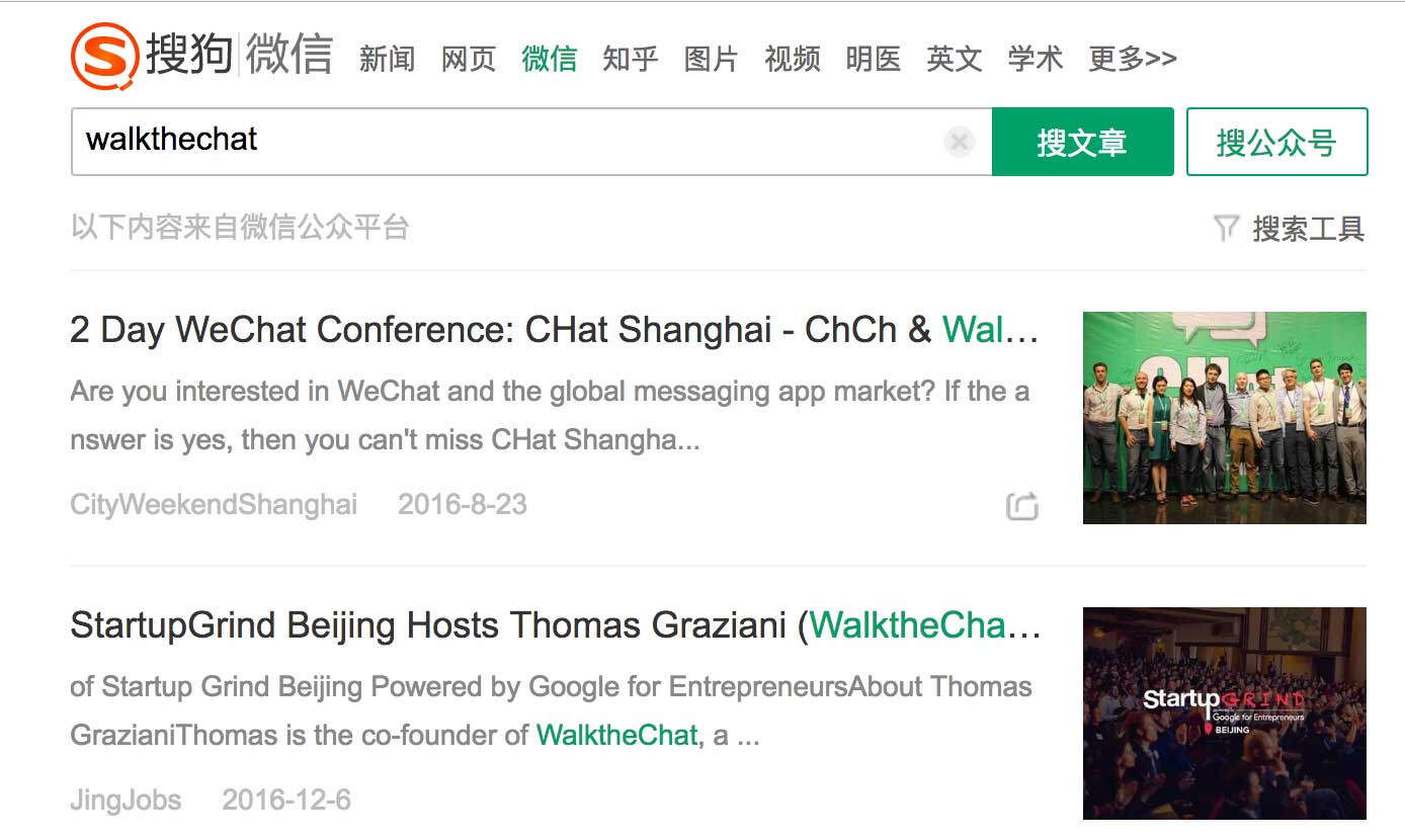 As such WeChat Search is very different from Baidu as it doesn’t index the whole Internet: it simply lists the content accessible within WeChat.
