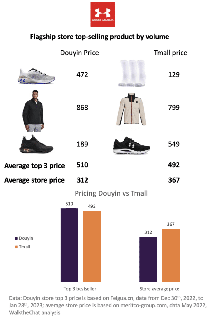 Brands that want to better control pricing in multiple channels, could consider develop up platform-specific SKUs. Under Amour’s hero product, the ColdGear React jacket is only sold on Douyin. This way even when users find out a similar jacket on Tmall is sold for 300 more, they won’t be too angry due to the slight design difference.