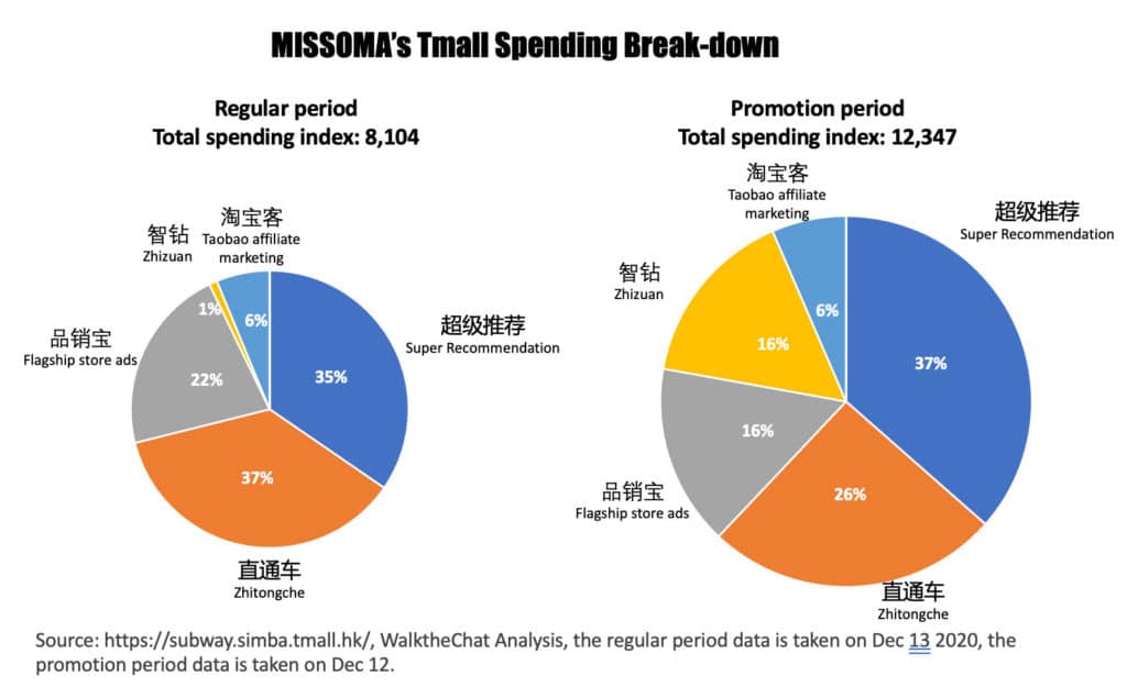 Medium-size brands can choose to invest in Zhizuan during the Tmall promotion periods. For example, MISSOMA spent around 16% of their budget on Zhizuan during Double 12, while spending less than 1% during regular sales periods.