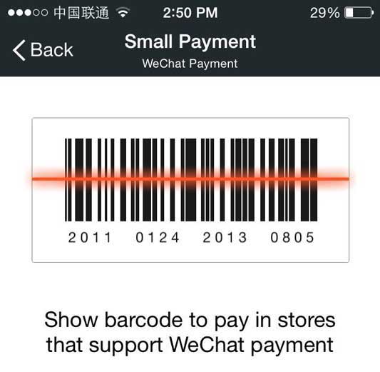 Tomorrow, some shops in China will start accepting “Small Payment” for WeChat users (in Chinese “刷卡”, “swipe card”).