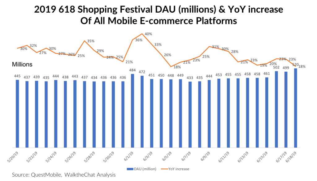 The 618 Sales did not just happen on June 18th. It’s a 18-day shopping holiday with a variety of promotional events. Compared with 2018, a lot of the traffic has shifted towards the beginning of the 18-days period, creating a 36%-40% YoY increase on the first 2 days.