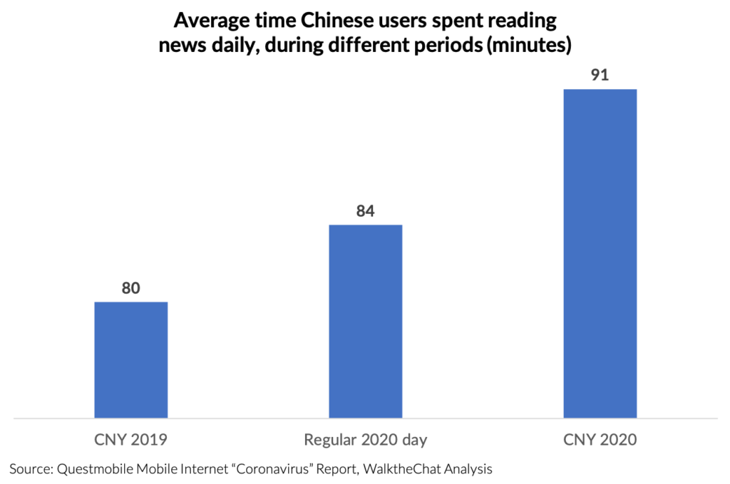 All news platforms saw a peak in traffic. Wangyi News saw an increase of 30% of its spent time.