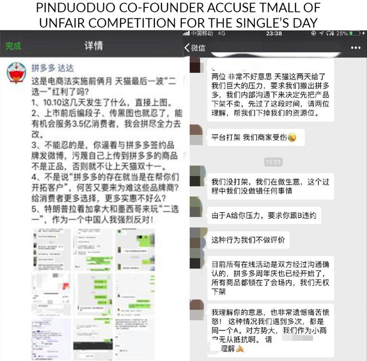 Tmall starts pressuring brands to choose between Tmall and Pinduoduo for their Single’s Day promotion. Some brands are asked to delete their products, or even deleting their Pinduoduo stores.